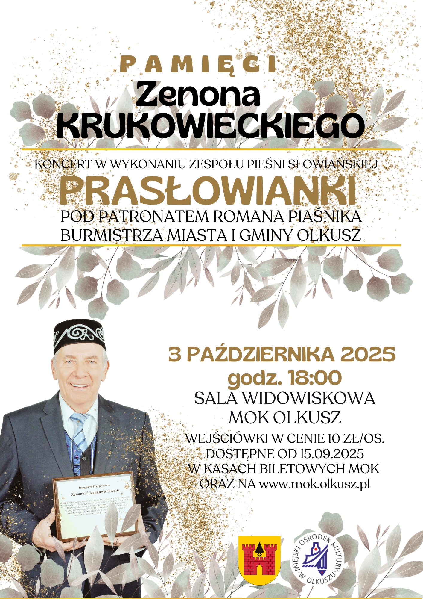 Miejski Ośrodek Kultury w Olkuszu zaprasza na wyjątkowy koncert poświęcony pamięci Zenona Krukowieckiego – osoby szczególnie zasłużonej dla kultury regionu.