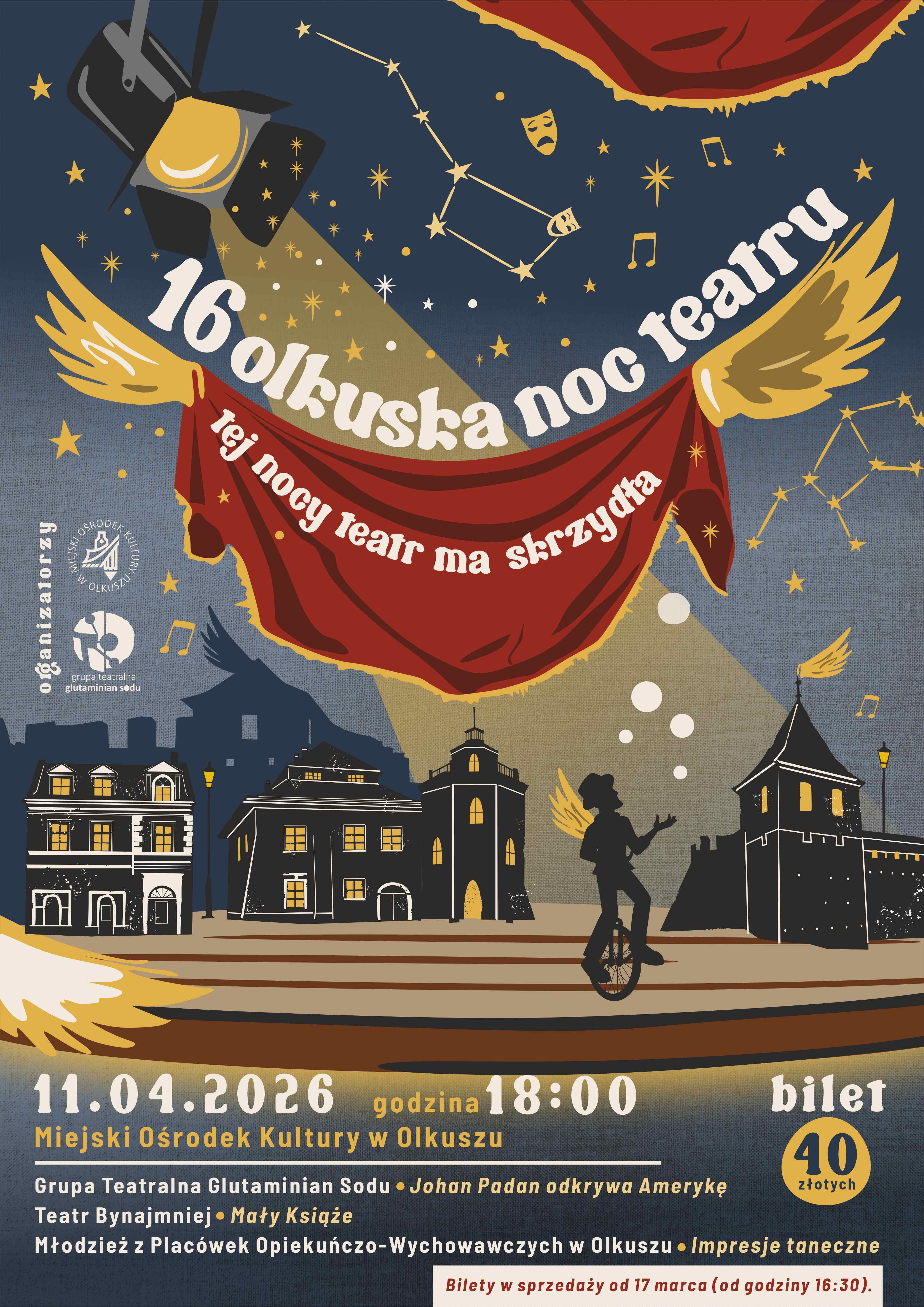 11 kwietnia zapraszamy Was na 16. Olkuską Noc Teatru. Zaczynamy o godz. 18.00.
